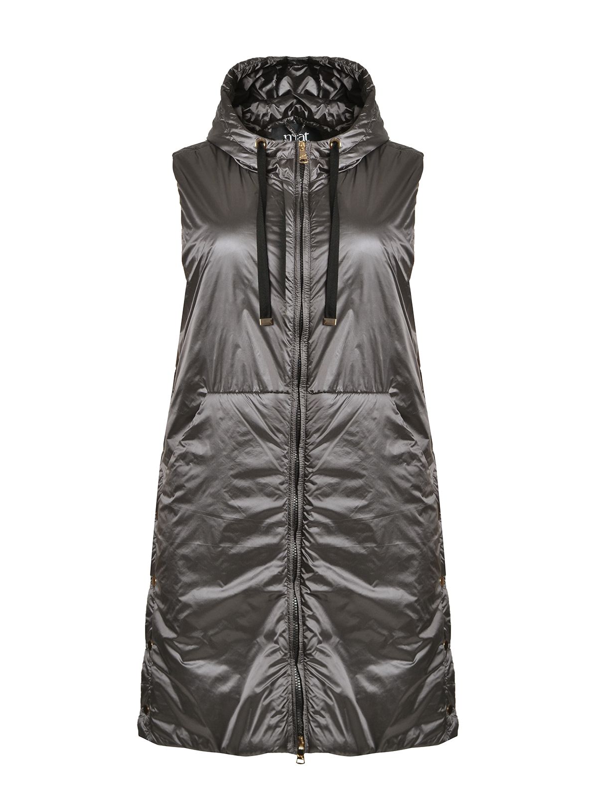 Gilet lungo imbottito smanicato con cappuccio